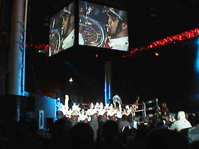 The opening session took place in a large auditorium and the center stage was set up like a professional boxing ring. Just before the band started playing they had a "T-shirt Toss" and I caught one of them. |