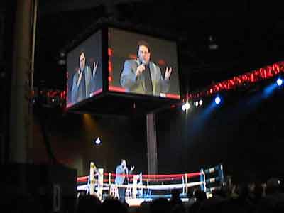 This is Scott Kelby, president of the National Association of Photoshop Professionals (of which I am a member) and editor-in-chief of PhotoshopUser Magazine. On screen they played a fictional account of his Rocky-style life growing up to become a boxer who combined that with Photoshop techniques. Then they had two Photoshop experts dressed in full boxing regalia "battle it out" in the ring by competing with techniques on opposing lap-tops. |