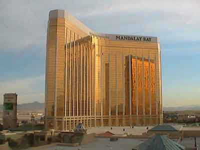 The conference was held at the huge casino/resort Mandalay Bay which has a vaguely Southeast Asian decor. This photo only shows one of the large towers and a small section of the vast covered areas. |